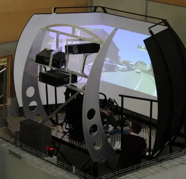 Illustration d’un simulateur de conduite immersif utilisé pour l’expérimentation de systèmes de conduite autonome (image d’illustration).